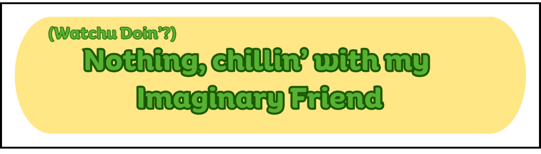 For instance, Juniper and I were dropping into toddler gymnastics with our characteristic enthusiasm unknown to human kind when Chingy’s song “Holidae Inn” popped into my head. Yet, instead of chillin’ at the holidae inn, something I would never do because I don’t drink or seek to fornicate with multiple random strangers, I realized the line “imaginary friend” works almost perfectly as a replacement his line “holidae inn.” That made much more sense to my experience than the womanizing and glorification of getting wasted. I smiled to myself and then threw myself through the toddler obstacle course with no regard for my personal safety. After her haircut and requisite cake on a stick, I came home and made a sticker.