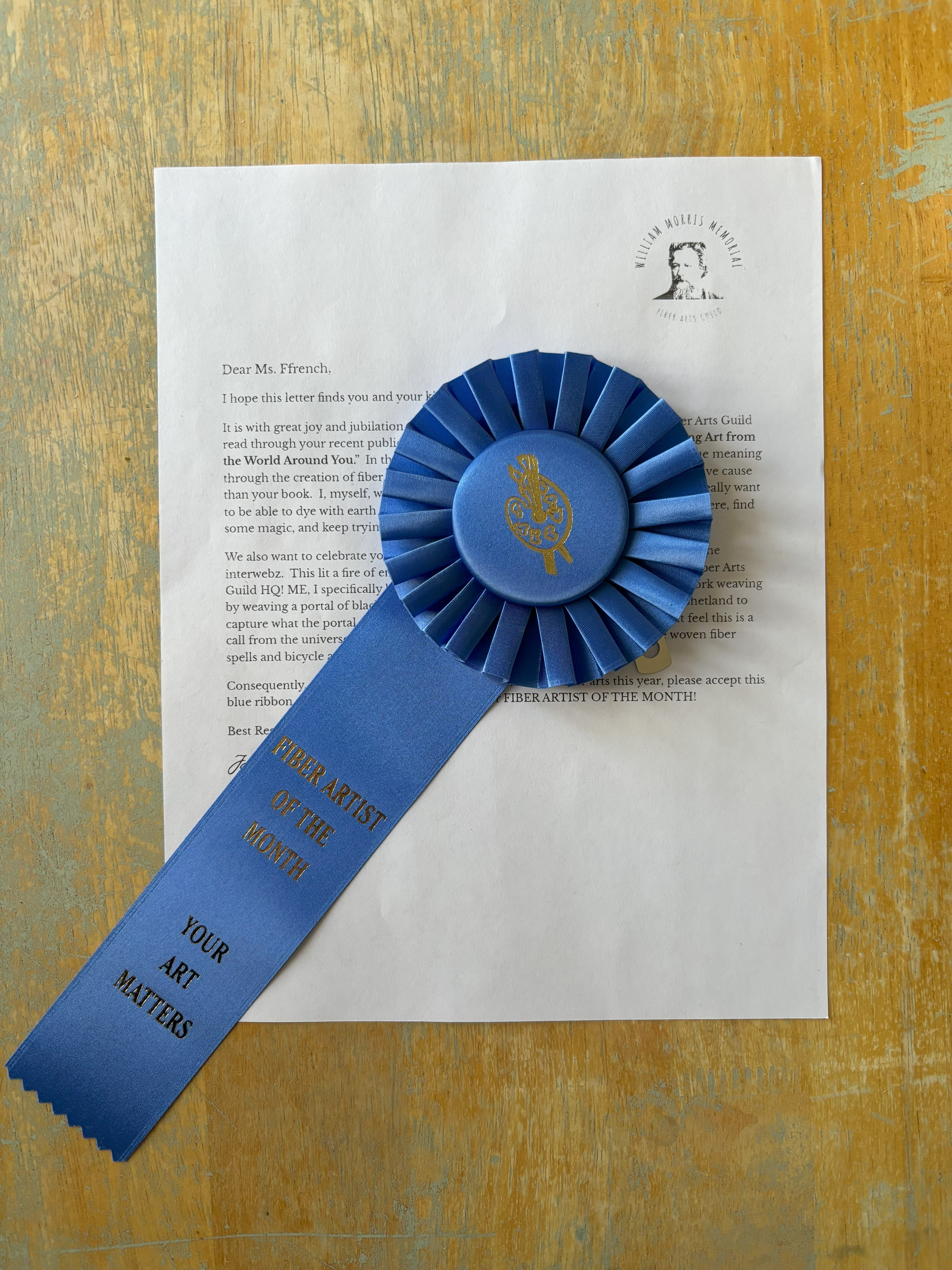 One thing I learned throughout the years is that making something free doesn’t increase “demand” exponentially though. I have often times offered to teach people to weave for free, sending folks a loom, tools and yarn to get started and offering my time to demo. Surprisingly enough, not a ton of people take me up on this offer. I experienced this again with the blue ribbons that I made for Fiber Club. I offered them up to folx online for free, because who doesn’t want a Fiber Artist of the Month blue ribbon? I mean, comon! That is awesome to have on hand. Well, the demand for this blue ribbon was not high. I had exactly one person reach out for one when I offered them up.