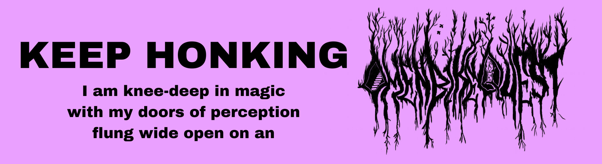 I designed a new bumper sticker for my bike side project Omen Bike Questing, featuring forest black metal logo artwork by Thee Bicycle Wizard. Do you want a copy? LET ME KNOW, HOSS!