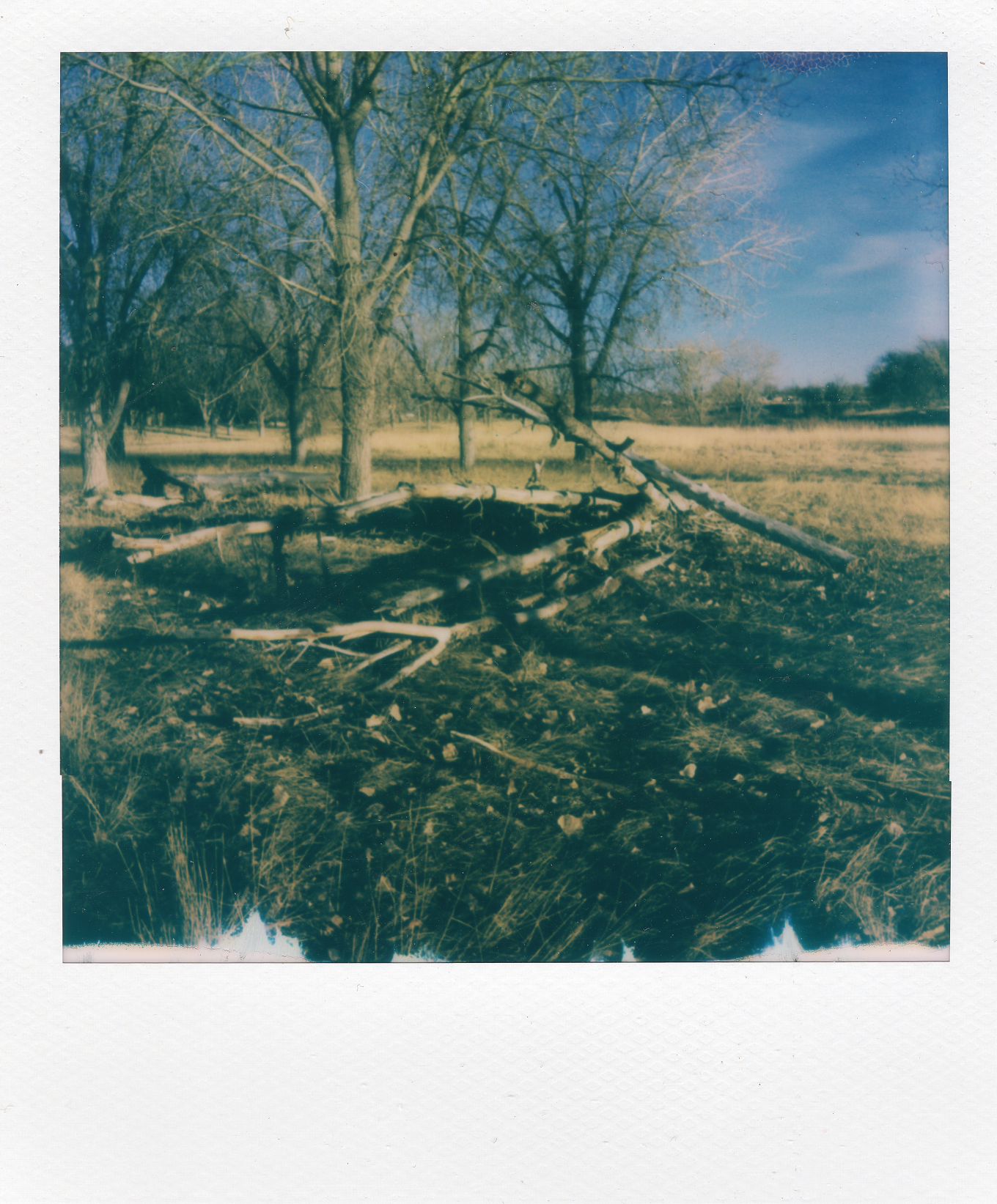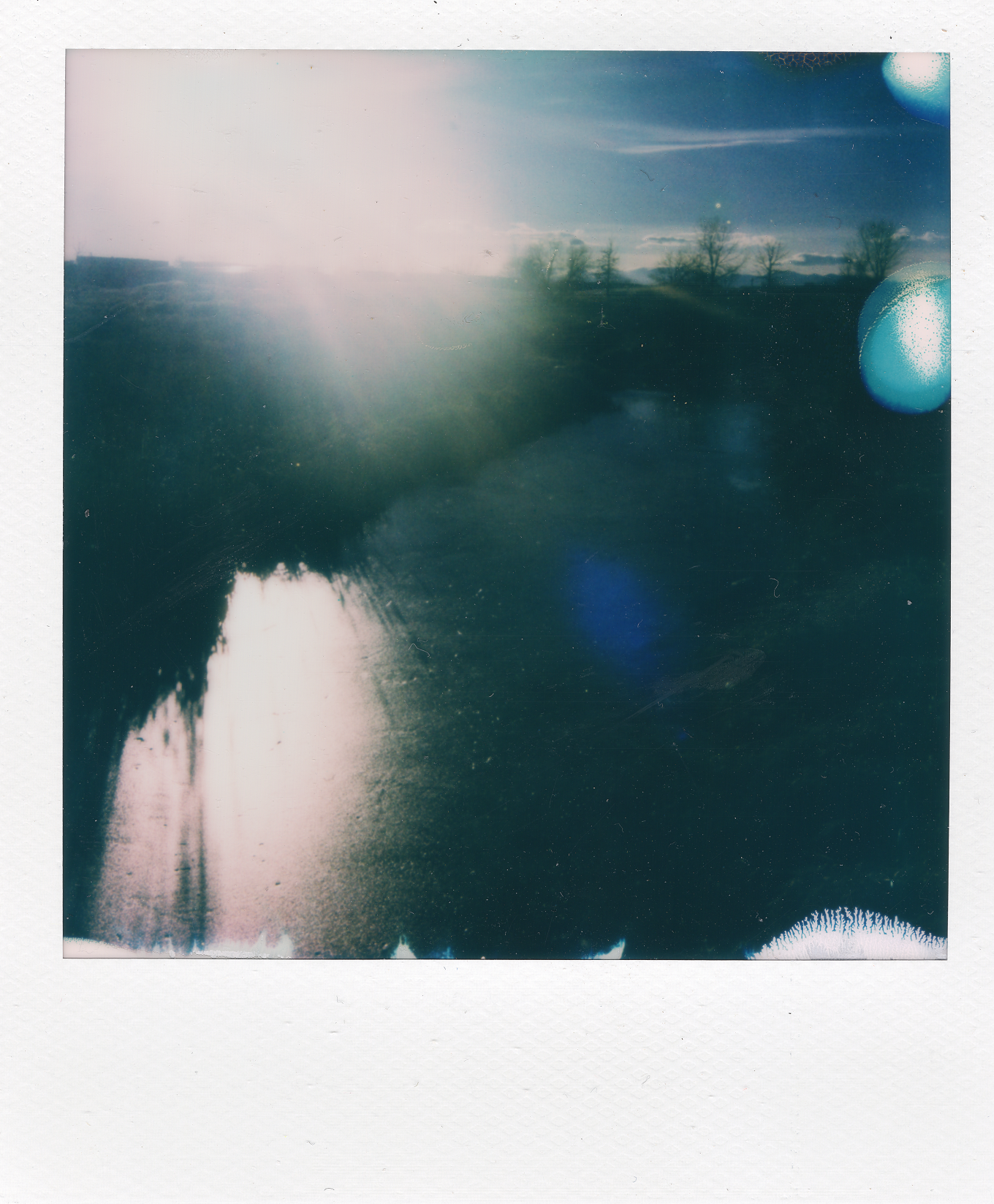 Given that I am going quiet for the dark season, I went out on a bike ride with the sun retreating fast over the western horizon. I snapped my little photos and felt all the pangs of grief over closing the book on this chapter of my creative life. I think I cried like three times today working through this essay. I haven’t cried in a long time. I snapped photos of things that reminded me of the darkness of this season: felled trees and ice on ponds. Taking them with the polaroid camera allowed me to let go of any control of the results. You, me, all of us aren’t in control of any of this. May we flow with the changing of the wheel. May you all be embraced in safety during this darkest season, with harm to none.